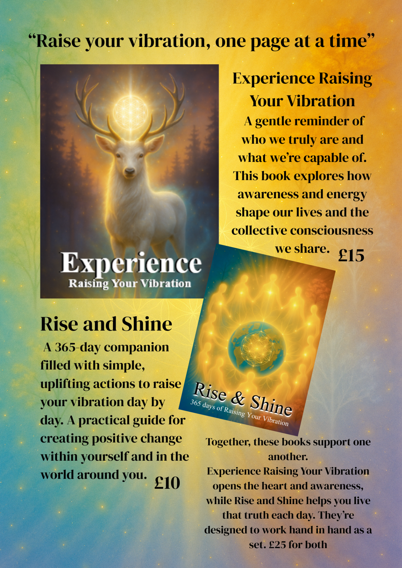 Experience Raising Your Vibration opens the heart and guides you into a deeper understanding of energy, emotion, and the power of conscious living. It invites you to look within, to clear what no longer serves, and to remember the light that you truly are.